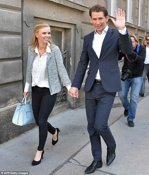 Ông Sebastian Kurz với bạn gái Susanne Their. Ảnh: Express