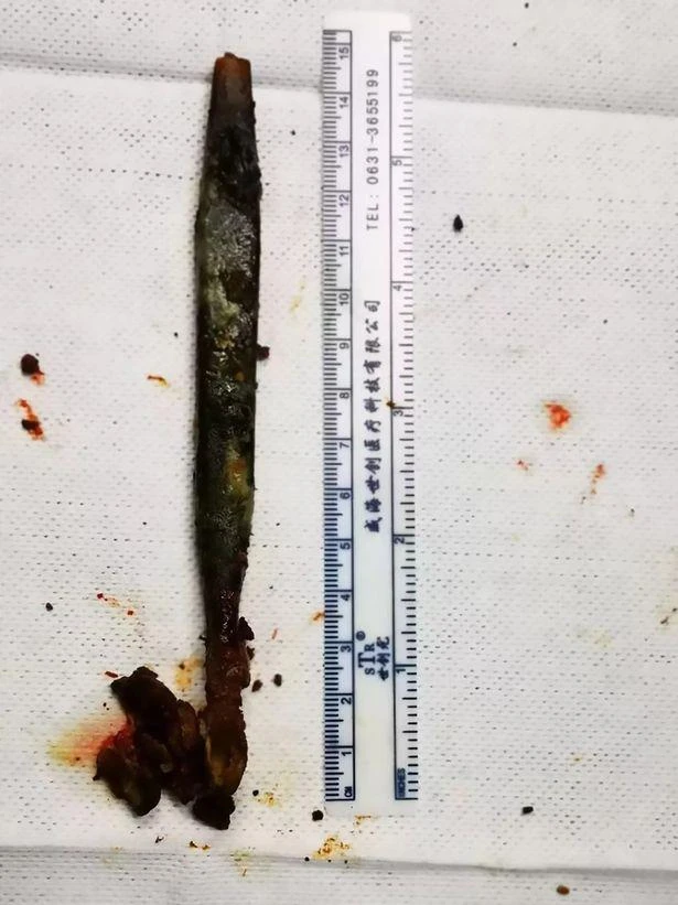 Các bác sĩ đã dùng máy nội soi để kéo cây bàn chải ra ngoài. Cây bàn chải đánh răng sau khi được lấy ra đen ngòm và toàn bộ lông bàn chải gần như bị vỡ nát. Các bác sĩ cho biết nếu bàn chải không được lấy ra, nó có thể sẽ ảnh hưởng đến gan, dẫn đến nhiễm trùng và tử vong.