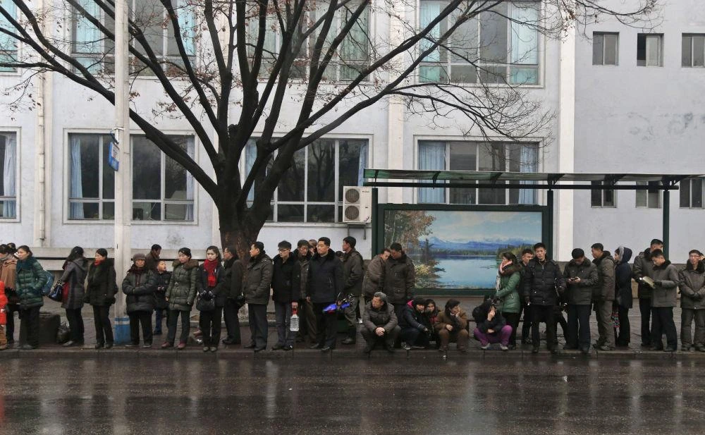 Người dân chờ xe buýt ở một tuyến đường Bình Nhưỡng hôm 3-2. Ảnh: AP