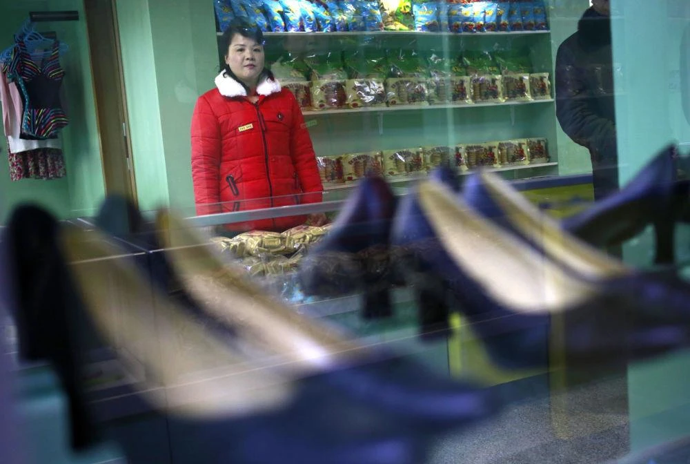 Người bán hàng đứa bên trong quầy dành cho các công nhân tại nhà máy dệt may ở Bình Nhưỡng hôm 30-1. Ảnh: AP