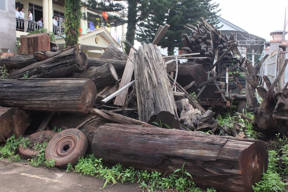 Các “núi thủy tùng” tại các hạt Kiểm lâm Ea H'leo, Krông Năng nằm dầm mưa dãi nắng suốt một thời gian dài để thử... độ tốt của gỗ.