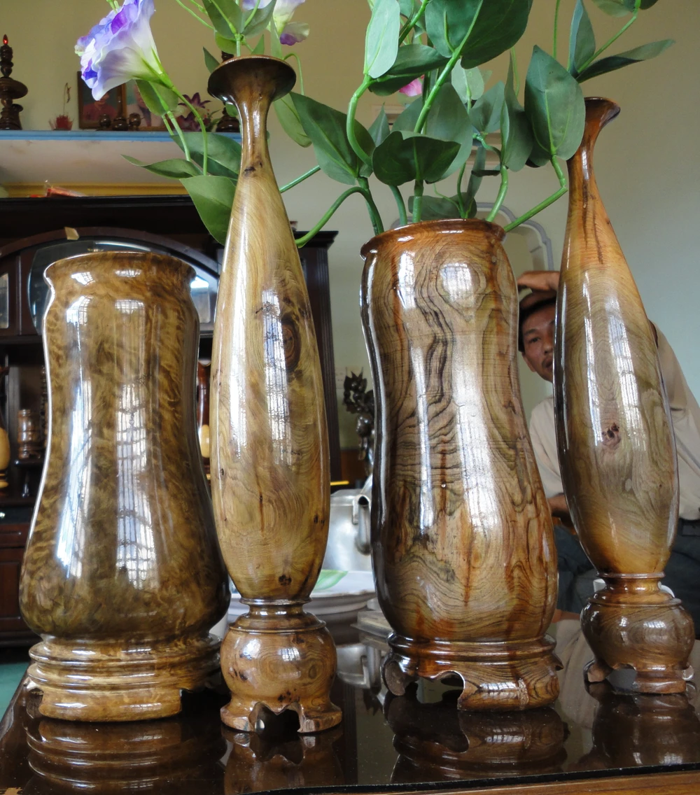 Gỗ thủy tùng được chế tác thành độc bình, tạc tượng…