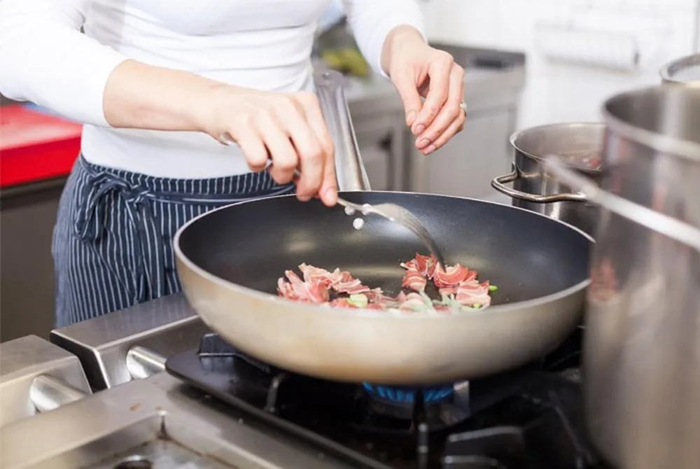 Nấu ăn bẳng xoong, chảo chống dính trên nhiệt độ cao gây ảnh hưởng tới tuổi thọ chảo và độ an toàn của thực phẩm. Ảnh: Internet