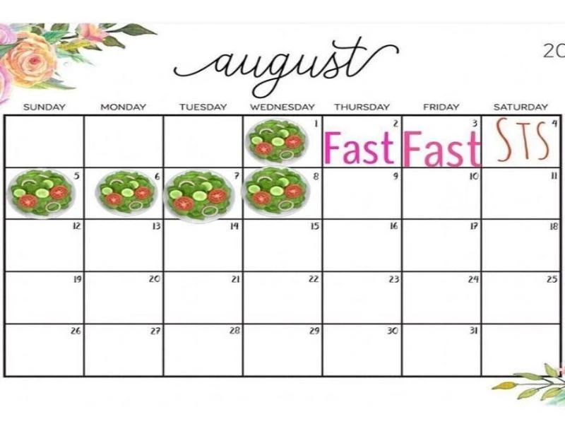 Nếu vào những ngày ăn chay, bạn không thể ăn 500-600 calo, bạn có thể tăng lên 800. Tuy nhiên, ở trường hợp này, chế độ ăn low-carb là cần thiết trong 5 ngày bình thường. Bạn nên có một ứng dụng đếm calo những thứ bạn ăn vào những ngày ăn kiêng.