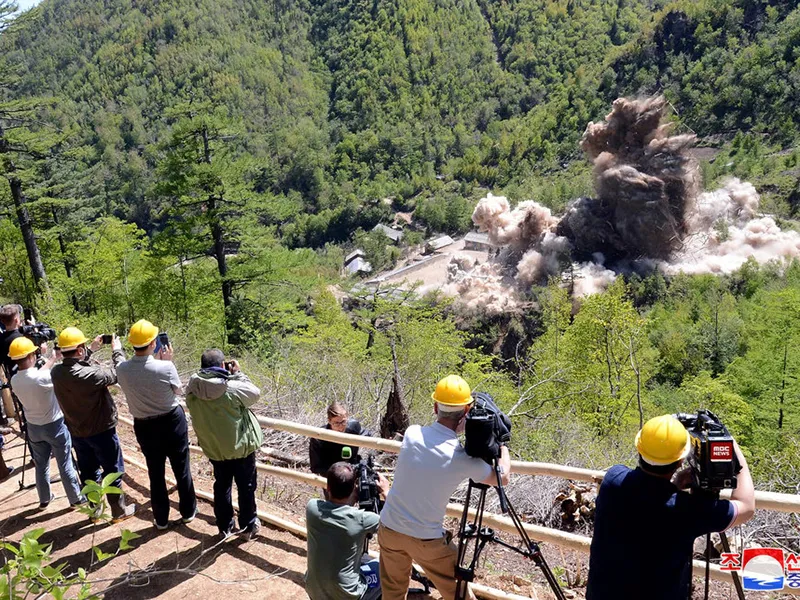 Triều Tiên phá hủy bãi thử hạt nhân trước sự chứng kiến của các nhà báo nước ngoài. Ảnh: REUTERS