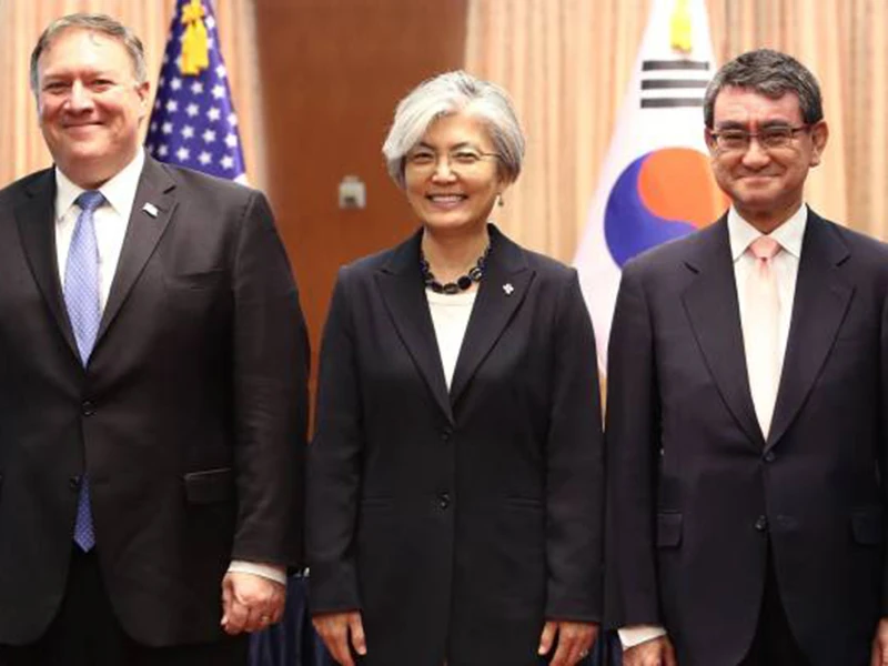 Ngoại trưởng Mỹ Mike Pompeo từ Singapore sang Hàn Quốc ngày 13-6 bàn hướng đi tiếp theo liên quan Triều Tiên với hai đồng minh Hàn, Nhật. Họp báo chung với hai người đồng cấp: Hàn Quốc - Kang Kyung-wha và Nhật - Taro Kono sáng 14-6, ông Pompeo cho biết tiến trình thương lượng giải trừ hạt nhân Triều Tiên sẽ dựa trên sự hợp tác chặt giữa Mỹ, Hàn, Nhật.