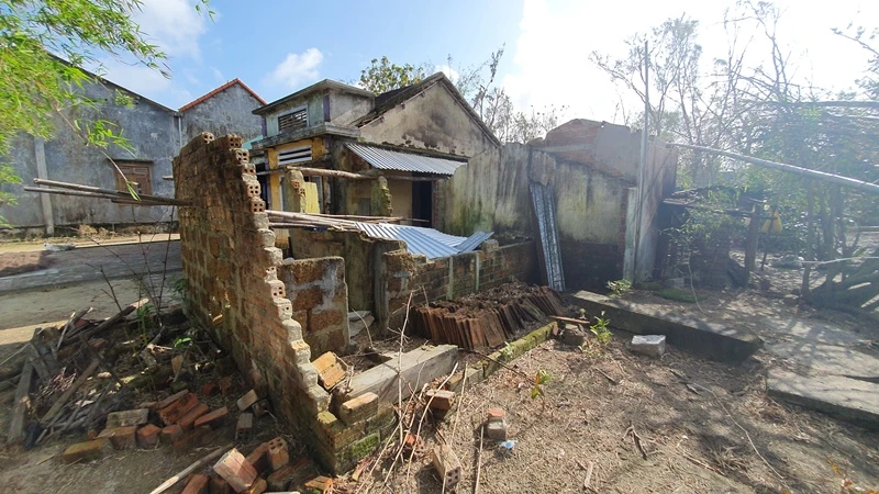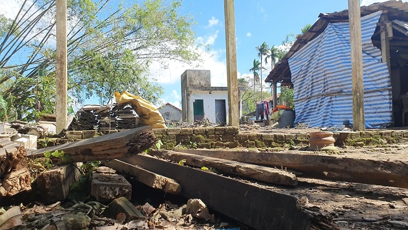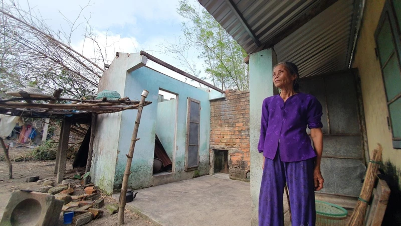 Căn nhà của chị em bà Nguyễn Thị Thơm (72 tuổi, ngụ xã Tam Tiến, Núi Thành, Quảng Nam) tan nát sau bão số 9