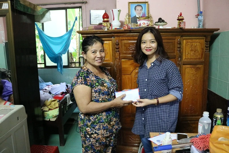 Phóng viên Báo Pháp Luật TP.HCM chuyển số tiền 20 triệu đồng do bạn đọc của báo đóng góp. Ảnh: THANH TUYỀN.