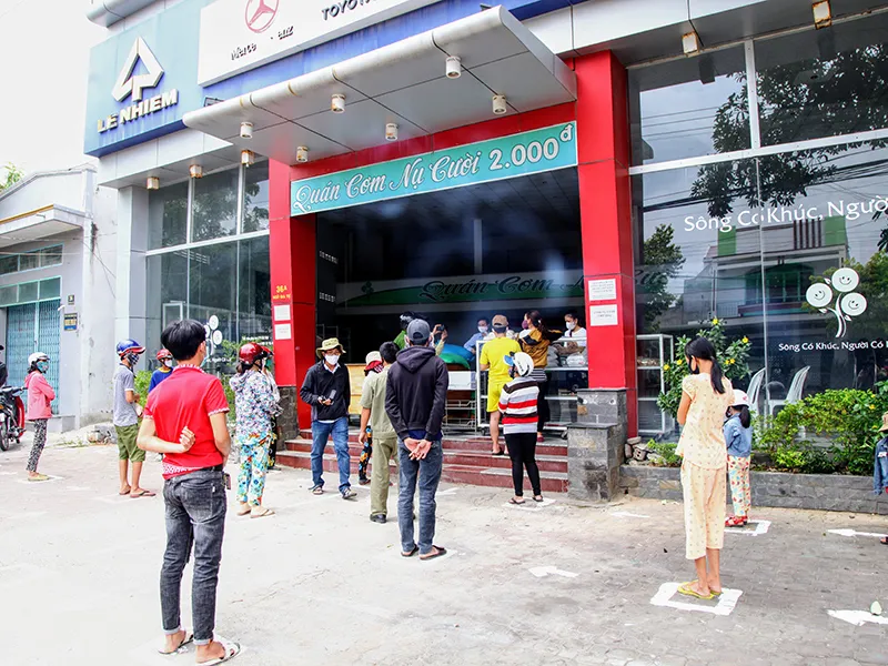 Do ảnh hưởng của dịch nên giá cơm ngày thường gồm bốn món giá 2.000 đồng/phần thì nay được hạ giá còn 1.000 đồng/phần. Hôm qua, quán có thêm dịch vụ bán gạo giá 1.000 đồng/kg cho người khó khăn.