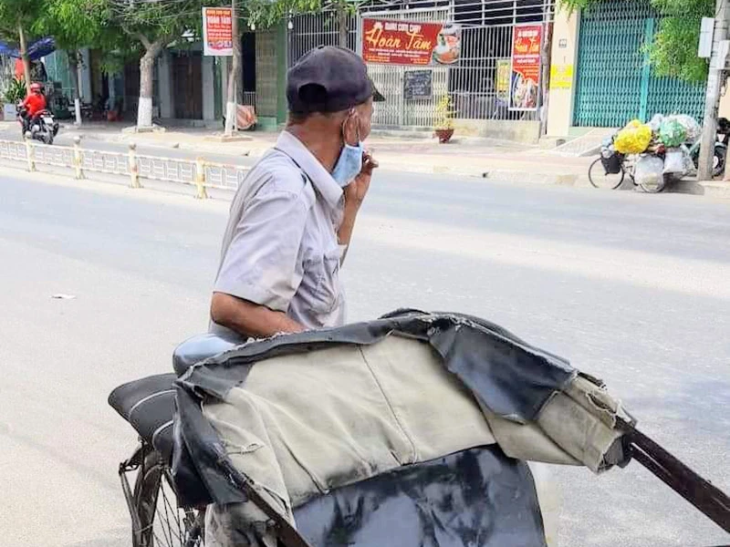 Cầm hộp cơm và bịch gạo ra về, ông PL (73 tuổi, sống độc thân ở phường Phước Mỹ), đã mấy chục năm làm nghề đạp xe xích lô, nói: “Già mà đạp xích lô như tui bây giờ không kiếm đủ ăn, ngày nào nhiều nhất được 50.000, có ngày không được đồng nào, năm năm nay cứ trưa nào cũng đến đây để ăn cơm”.