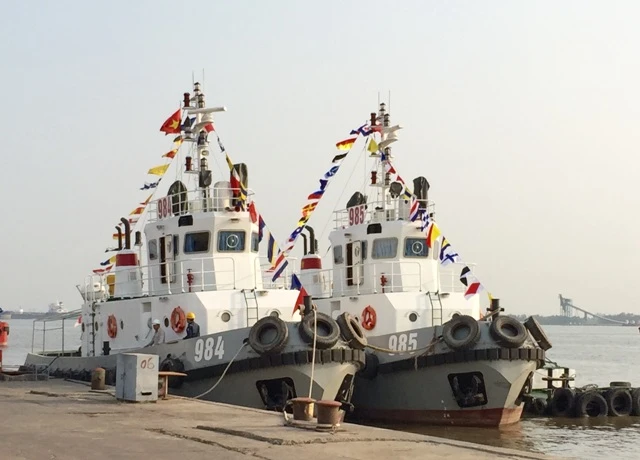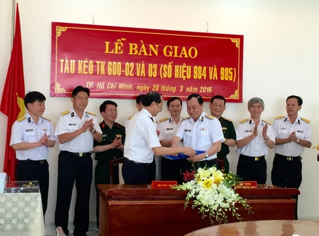 Lễ bàn giao hai tàu kéo Tk 600 cho Quân chủng Hải quân.