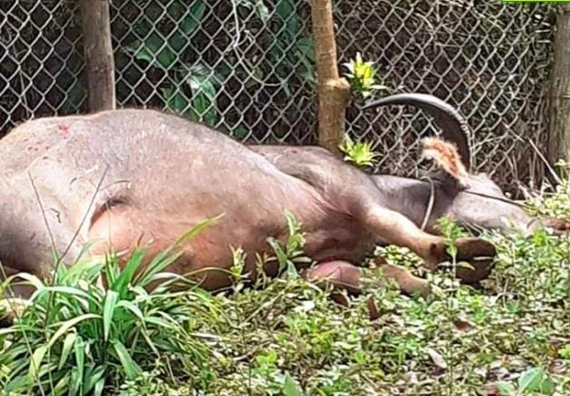 Trâu "điên" tấn công nhiều người đã bị bắn hạ. Ảnh: AH