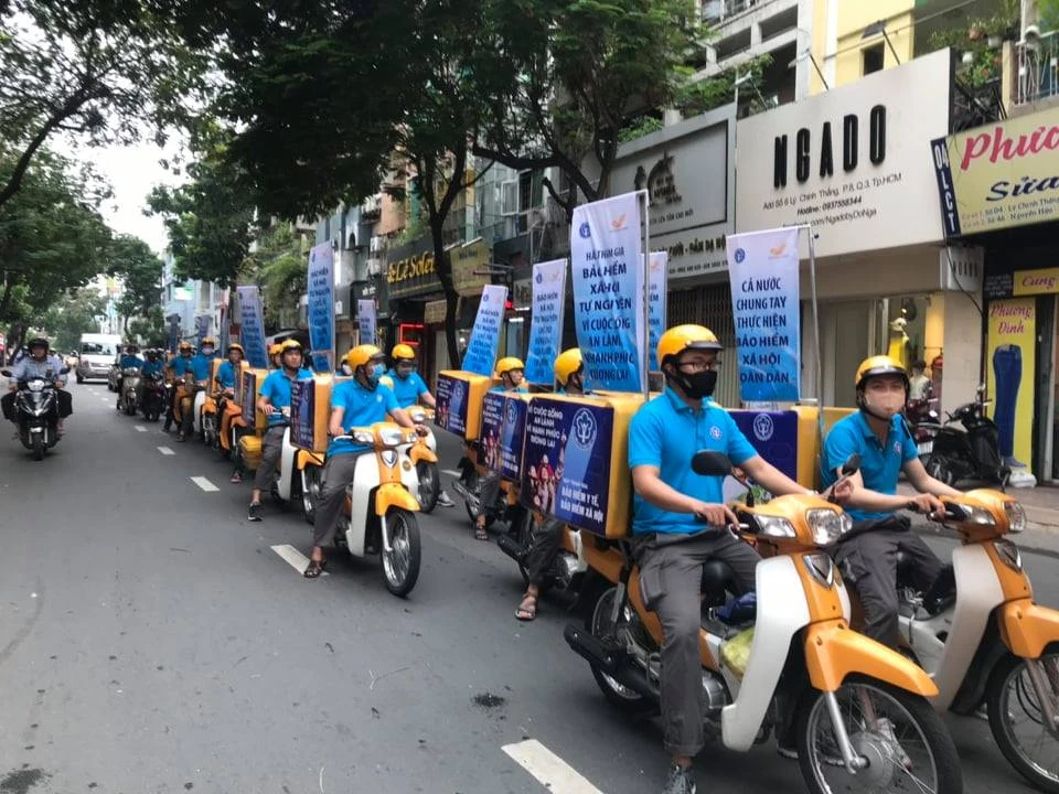 BHXH TP.HCM và Bưu điện TP.HCM tuyên truyền chính sách BHXH tự nguyện trên đường phố
