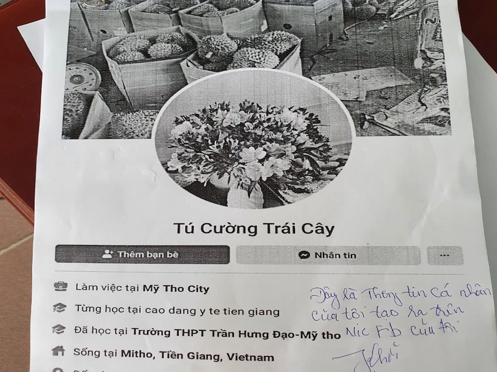 Thông tin ban đầu, trước đó chị VTNN (ngụ TP cần Thơ) có đăng tải thông tin tìm nguồn nông sản mua để bán lại. Sau đó, tài khoản Facebook “Tú Cường Trái Cây” chủ động nhắn tin cho bà N. xưng tên Cường cung cấp thông tin, giá cả các loại nông sản.