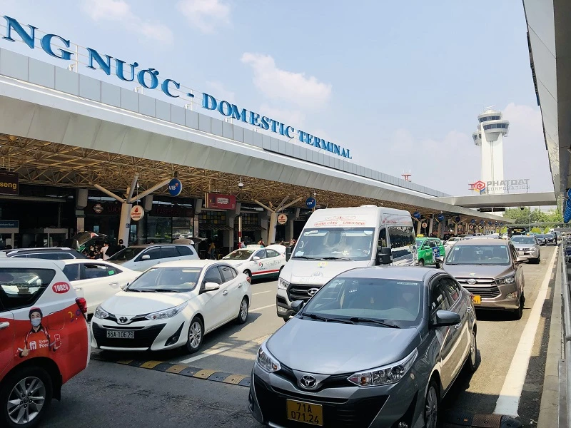 Dòng xe ô tô đông đúc tại sân bay Tân Sơn Nhất. Ảnh: PHONG ĐIỀN