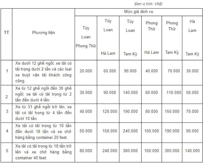 Theo đó, mức phí thấp nhất là 20.000 đồng, cao nhất là 380.000 đồng.