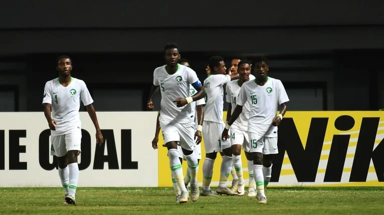 U-19 Saudi Arabia ăn mừng bàn thắng đầu.