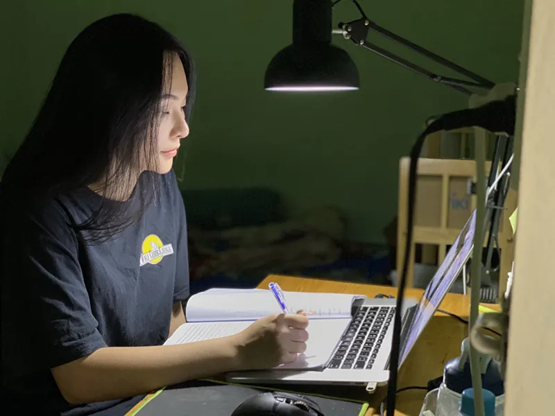 Học sinh Trường THCS - THPT Hai Bà Trưng đang học bài tại nhà. Ảnh: NTCC