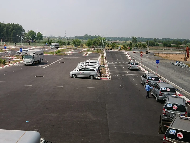Một buổi sát hạch giấy phép lái xe tại trung tâm sát hạch lái xe Hóc Môn. Ảnh: L.THY