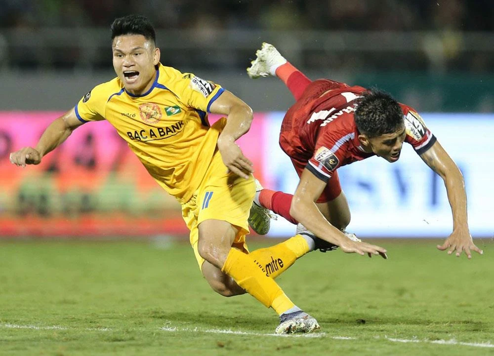 Tương tự ở trận đấu giữa TP.HCM và SL Nghệ An khuôn khổ vòng 11 V-League, Nguyễn Công Thành (TP.HCM) bị “treo giò” hai trận kế tiếp do hành vi phạm lỗi nghiêm trọng với Phạm Xuân Mạnh của SL Nghệ An.
