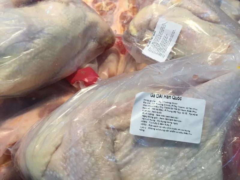 Gà dai Hàn Quốc đông lạnh. Ảnh: T.UYÊN