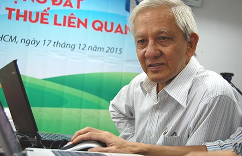 Luật gia Nguyễn Thái Sơn (nguyên Trưởng phòng Thuế thu nhập cá nhân Cục Thuế TP.HCM) đang trả lời tại buổi giao lưu trực tuyến. Ảnh: H.VI