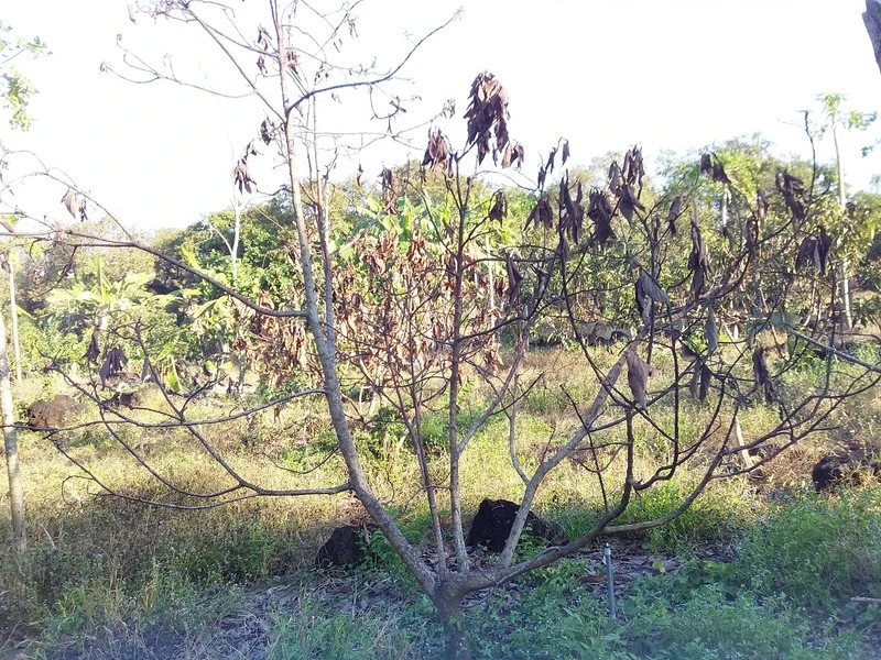 Hàng trăm cây bơ bị hạ độc chết dần. Ảnh: VH