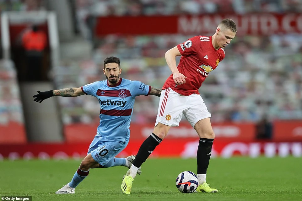 Đến phút 37, MU khiến khung thành của West Ham chao đảo bằng pha đi bóng và dứt điểm trong vòng cấm của Greenwood, tuy nhiên pha kết thúc của số 11 của bên phía MU không thể thành bàn vì thủ môn Fabianski đã kịp đổ người để cứu thua cho đội nhà. Trước lối chơi chặt chẽ của West Ham, MU đành chấp nhận kết thúc hiệp một với tỷ số hoà không bàn thắng.