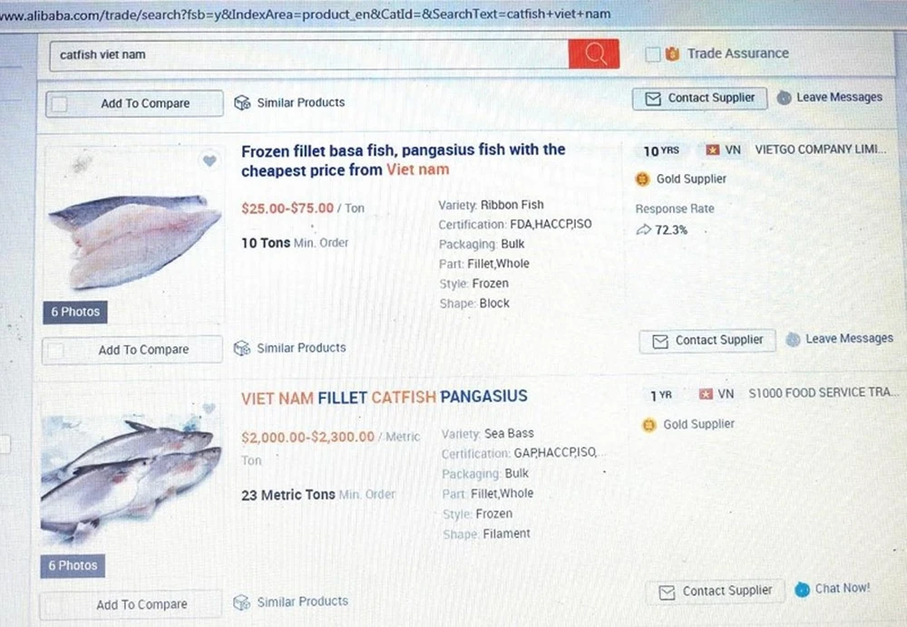 Cá tra Việt Nam được bán trên sàn thương mại điện tử Alibaba củaTrung Quốc thu hút nhiều khách hàng.