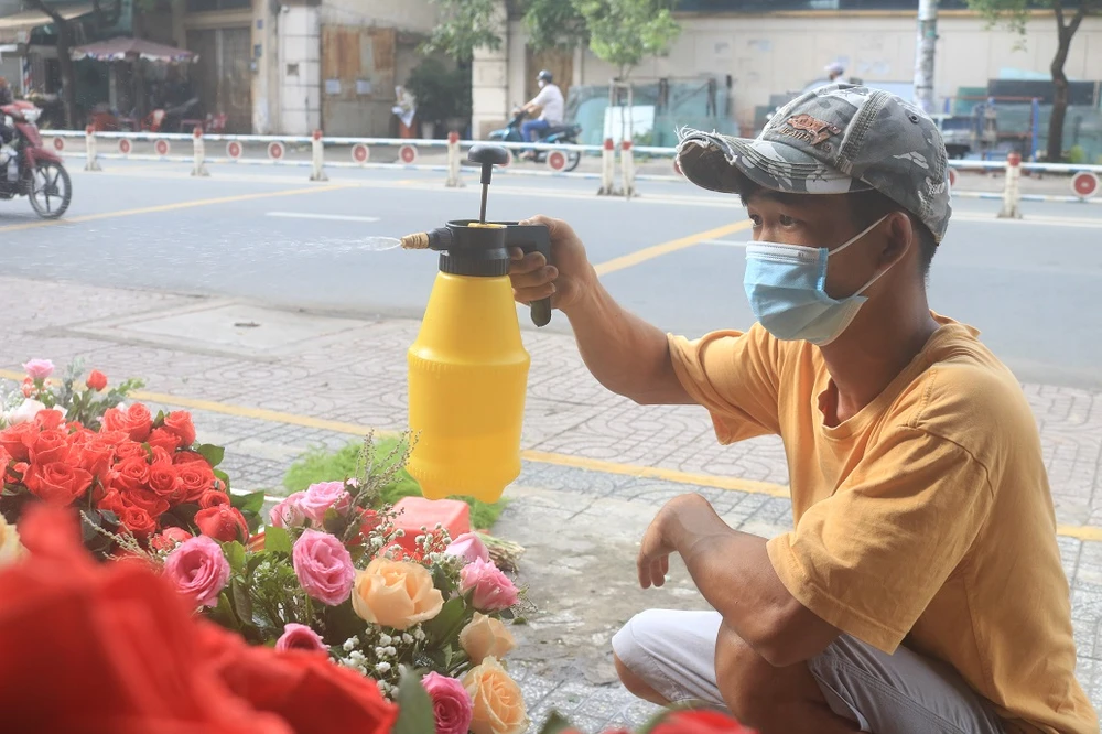 Khác với anh Thừa, cửa hàng của chị Trương Thúy Hồng (43 tuổi, TP Thủ Đức) lại vắng khách vì chưa có nhiều khách quen. Chiều 19, chị đang gói hai bó hoa hồng cho khách đặt trước. "Em này đặt hai bó hoa cho hai người phụ nữ quan trọng nhất cuộc đời là mẹ ruột và mẹ nuôi. Hai bó hoa tuy nhỏ nhưng tình cảm lại lớn. Sau dịch, mọi người càng trân trọng người thân bên cạnh mình hơn" - chị Hồng cười.
