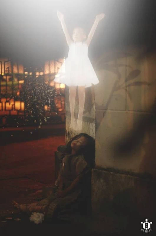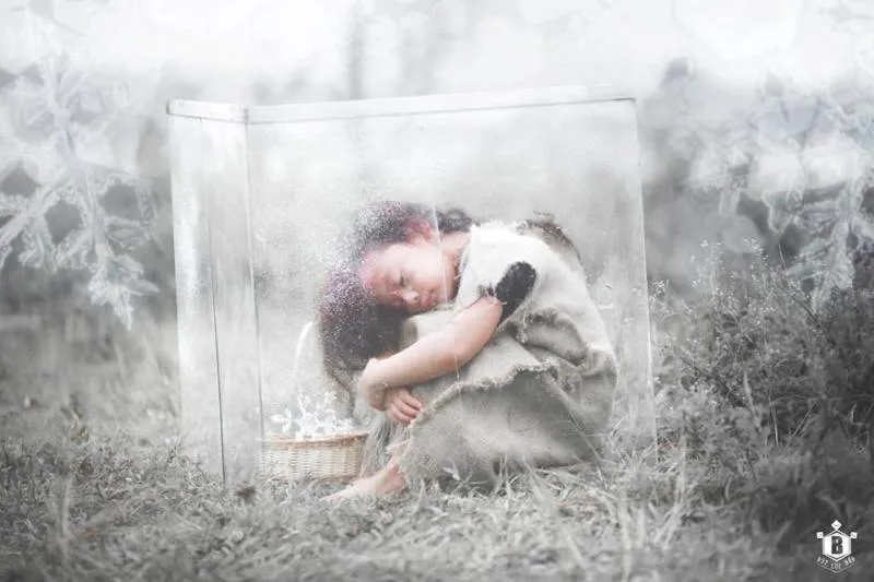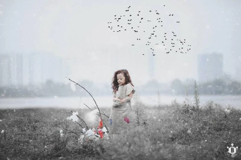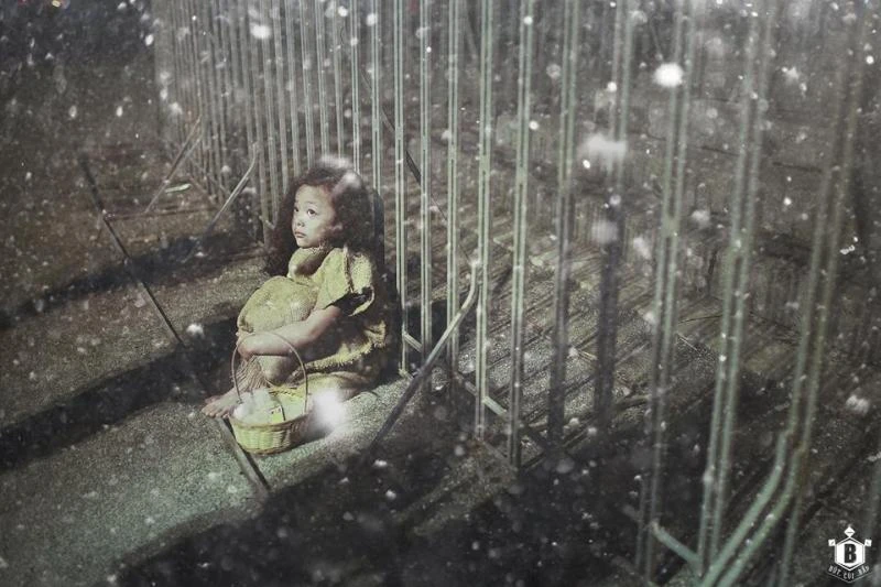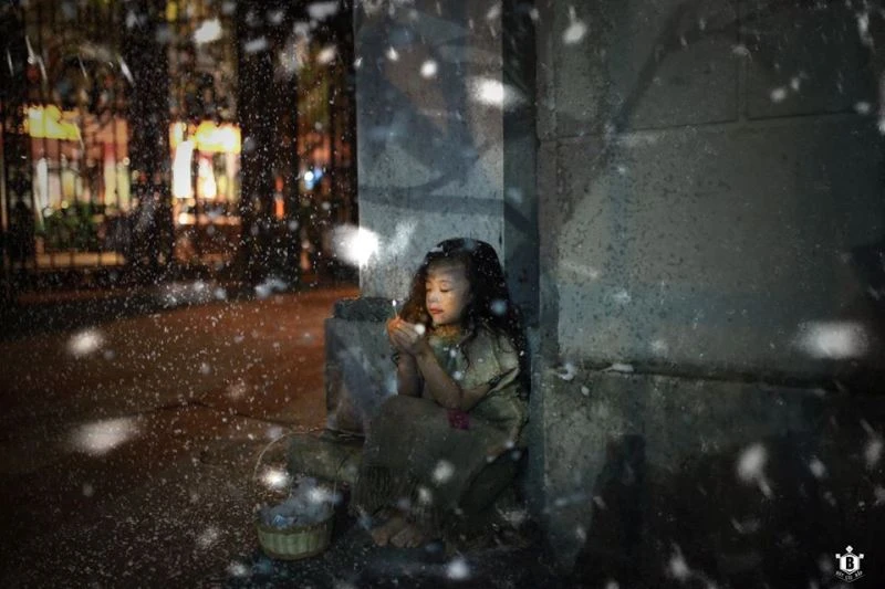 Tuyết lạnh phủ lên khuôn mặt em, lên đôi vai gầy bé nhỏ.