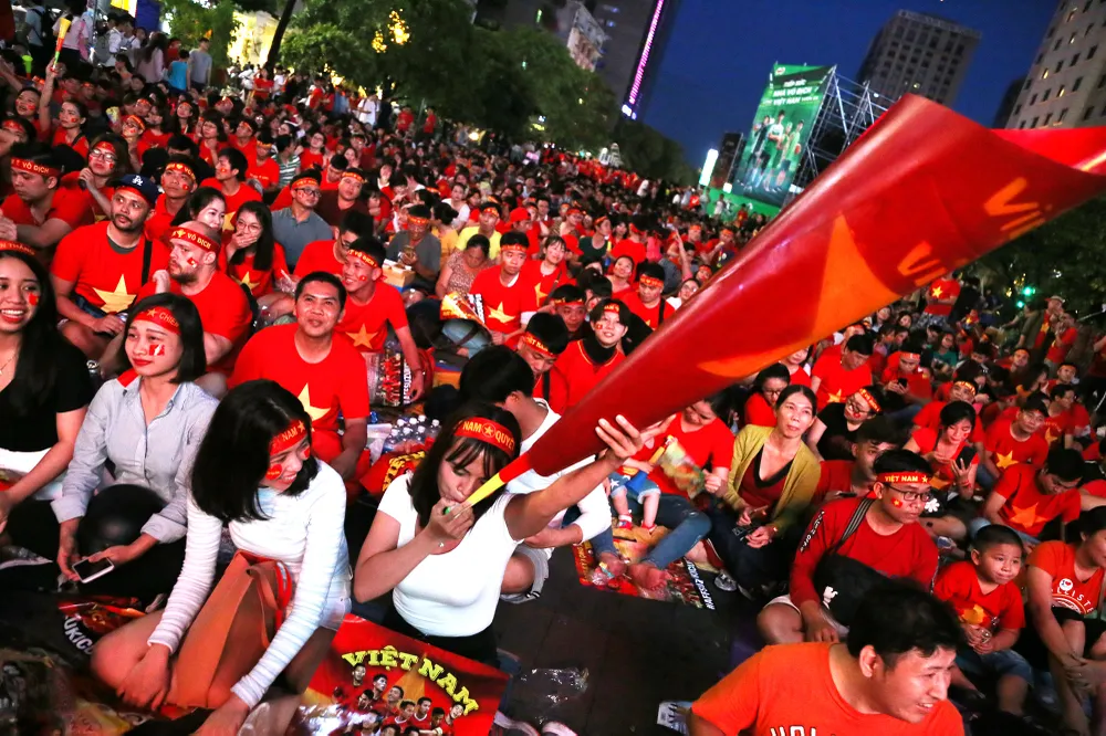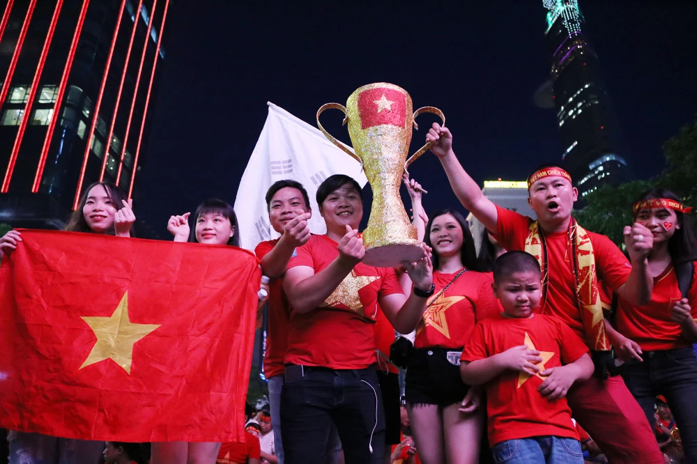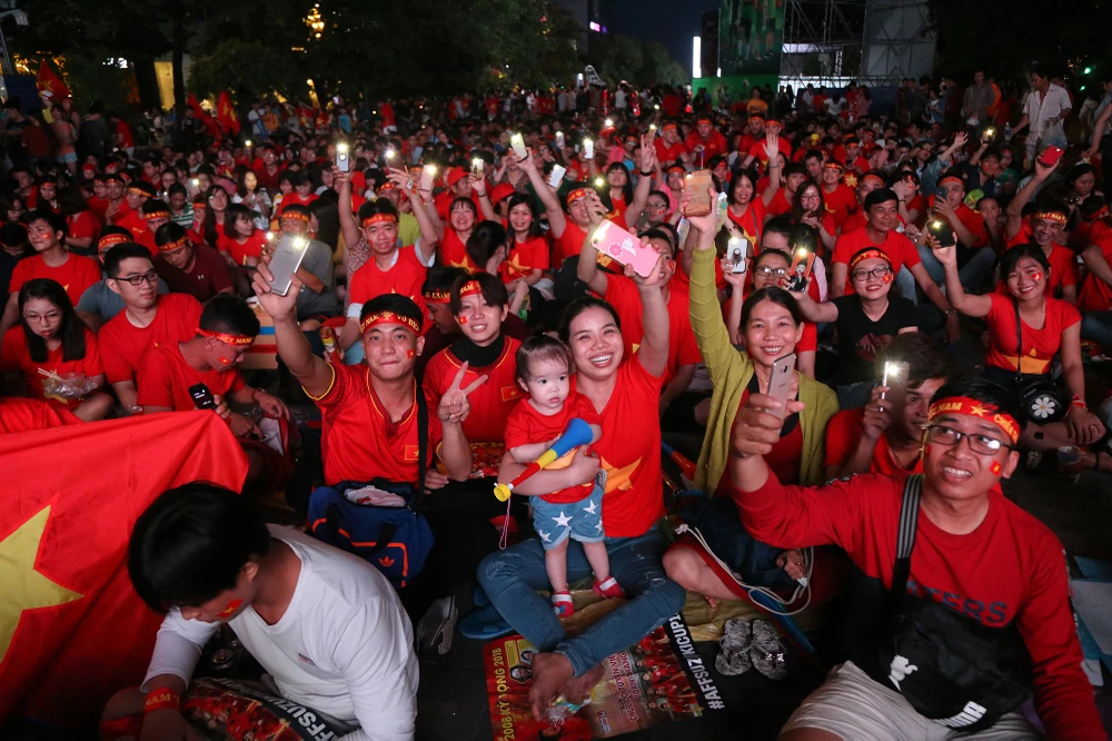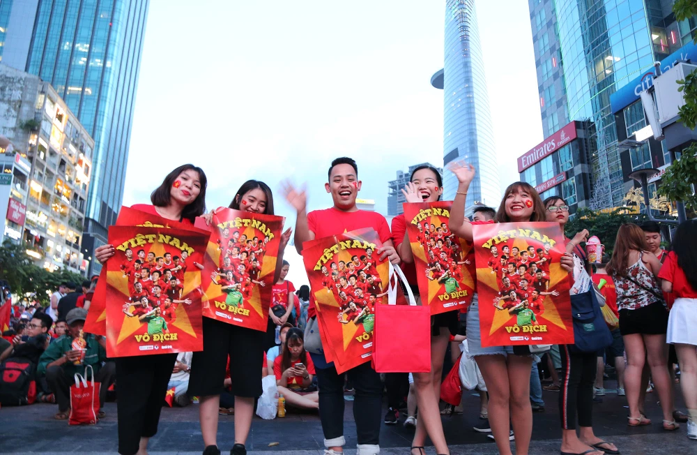 Từ 17 giờ, hàng ngàn người đã đổ về phố đi bộ Nguyễn Huệ (quận 1, TP.HCM) để tiếp lửa cho trận đấu cuối cùng vươn đến chức vô địch AFF Cup của đội tuyển Việt Nam.