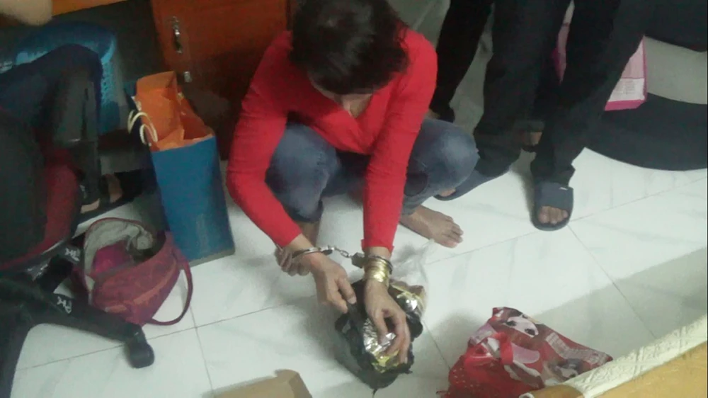 Người phụ nữ được xác định lấy ma túy từ đầu mối ở Hải Phòng sau đó bán lại thu lời hàng chục triệu đồng mỗi kg. Ảnh CA.