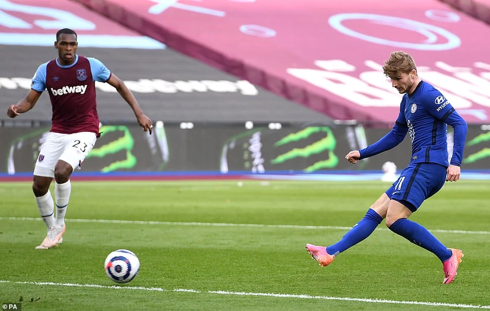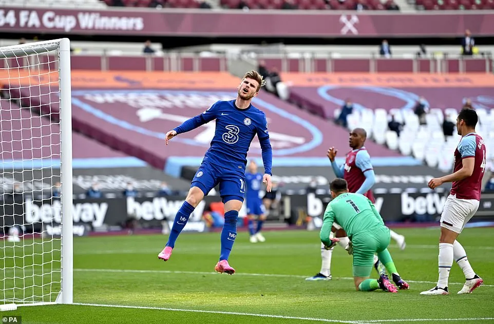 Werner đệm bóng dễ dàng ghi bàn thắng duy nhất cho Chelsea ở phút 43. Ảnh: PA.