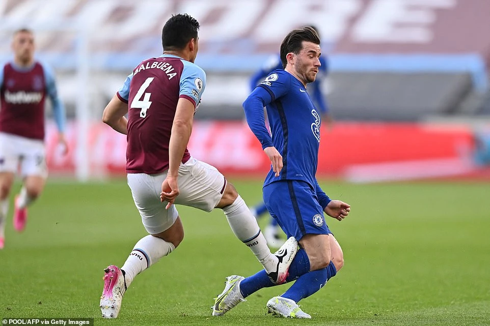 Từ tình huống West Ham đá phạt cố định, bóng được treo vào vòng cấm. Ngay lập tức, tiền vệ Tomas Soucek tung cú dứt điểm, đưa bóng chạm tay Azpilicueta. Tuy nhiên trong pha bóng này, trọng tài không cho West Ham được hưởng phạt đền vì đội trưởng của Chelsea đã chủ động khép tay.