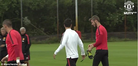 Thủ thành người Tây Ban Nha vừa trở lại Manchester hôm qua và lao vào tập luyện ngay với các đồng đội tại khu huấn luyện Carrington của M.U. Anh tỏ ra rất vui vẻ và tươi cười với các đồng đội trong buổi tập này. Trước đó, De Gea cũng đã có buổi shopping tại Manchester cùng 2 người đồng đội thân thiết Ander Herrera và Juan Mata.