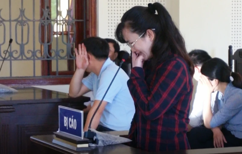 Bị cáo Nguyễn Thị Lam khóc ân hận tại phiên tòa sơ thẩm.