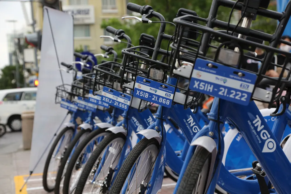 Theo ghi nhận của PV, những chiếc xe đạp công cộng đã xuất hiện trên đường phố ở TP.HCM.