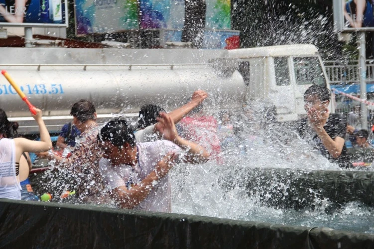 Bạn Nguyễn Thị Thanh Tâm (ngụ quận 8) chia sẻ: “Đến với lễ hội té nước mình rất vui. Không chỉ biết thêm về một lễ hội văn hóa của đất nước chùa Vàng mà mình còn được giải tỏa được cái nóng của Sài Gòn.”
