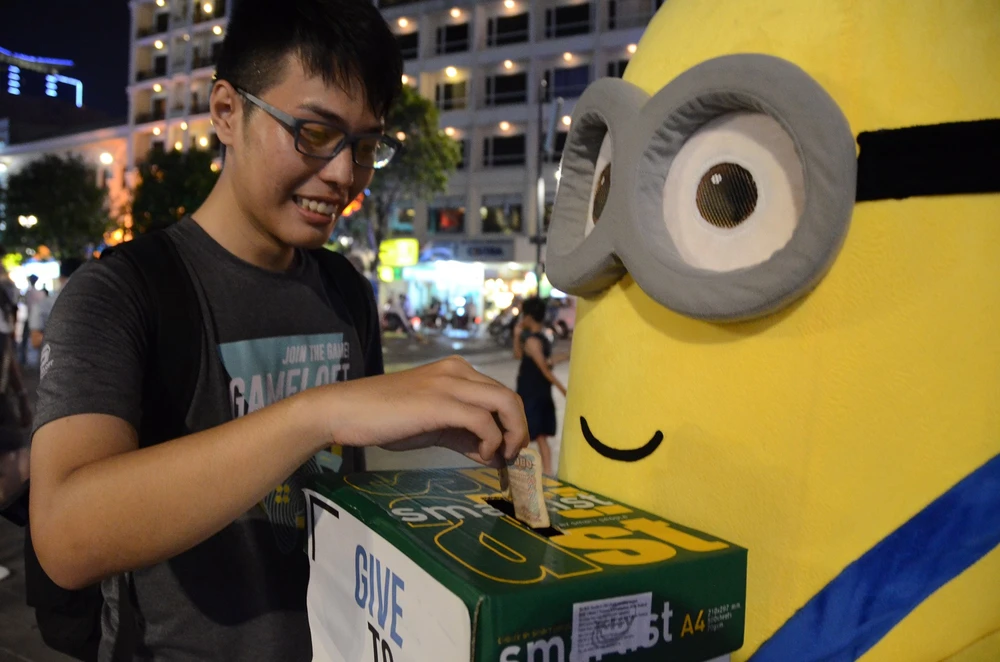 Mặc dù thời tiết Sài Gòn mấy ngày nay khá nóng, diện cả bộ đồ mascot lại càng khó chịu hơn nhưng các bạn sinh viên vẫn hết mình để làm công việc ý nghĩa này.