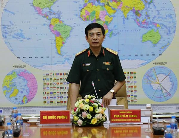 Thượng tướng Phan Văn Giang phát biểu tại hội nghị. Ảnh: MOD