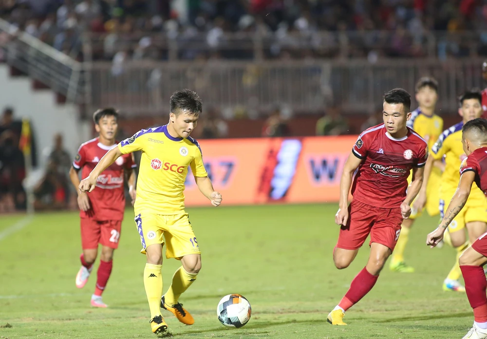 Bước ngoặt trận đấu là đây. Thiếu Văn Thuận, hành lang phải của TP.HCM lỏng hẳn và Hà Nội khai thác mạnh cánh này. Phút 58, Quang Hải có pha xử lý bóng kỹ thuật, sút chéo góc và sệt hạ gục thủ môn Thanh Thắng, san bằng 1-1.