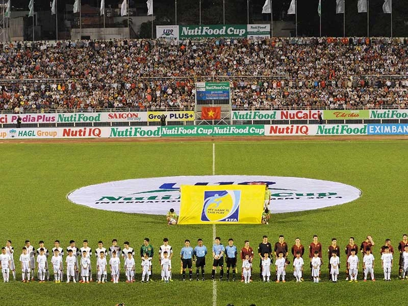 Nhà tài trợ NutiFood từng gây tiếng vang với các giải trẻ U-19 NutiFood nay tiếp tục đồng hành với bóng đá Việt Nam ở giải V-League. Ảnh: XUÂN HUY
