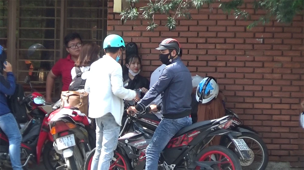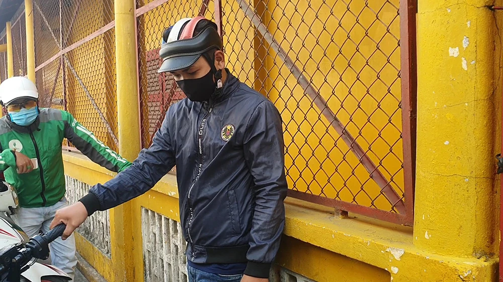 Nam thanh niên chạy xe máy của anh Phi đến trước trường đại học Sư phạm Kỹ thuật TP.HCM để chuẩn bị giao dịch. Ảnh: NGUYỄN YÊN