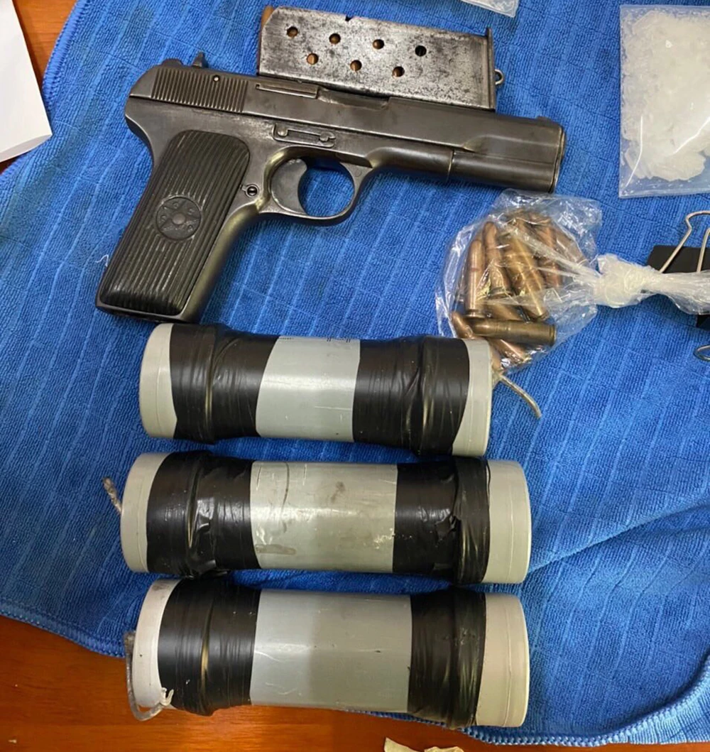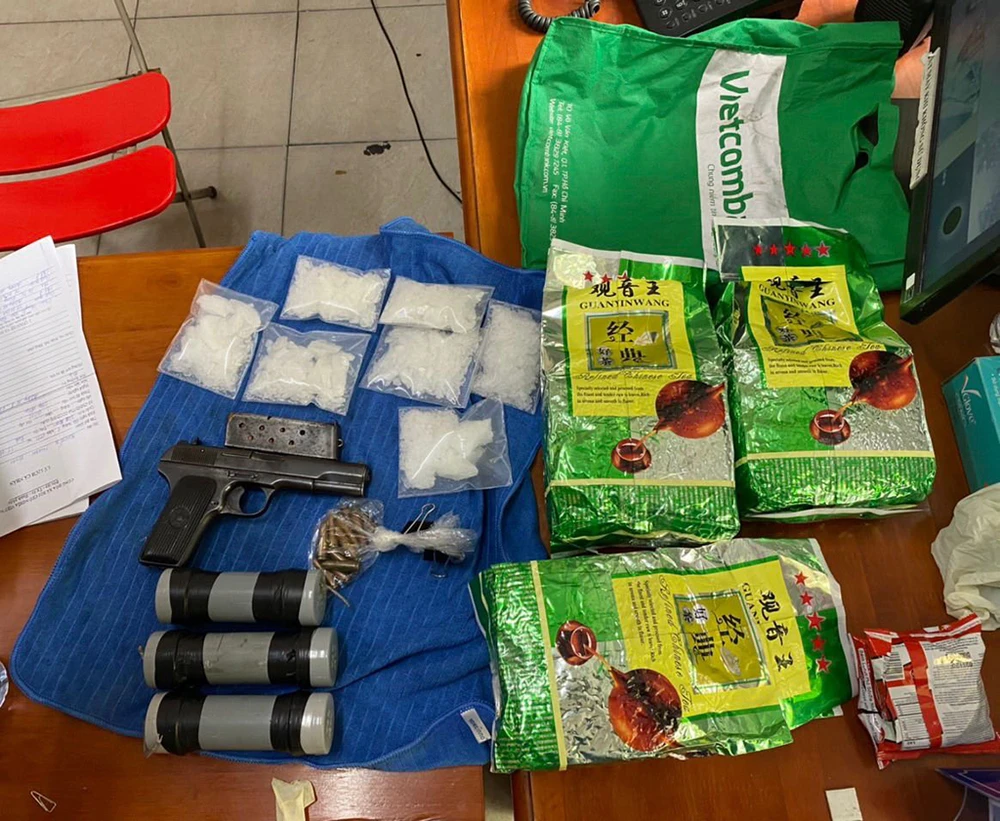 Khám xét chiếc xe, công an thu thêm 20 viên đạn, ba trái nổ và 3mkg ma túy. Nhóm này khai vừa mua ma túy của Phong.