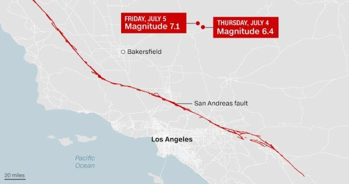 Chưa hết bàng hoàng vì các trận động đất vừa qua, cư dân bang California đang tích cực thu dọn đồ đạc sơ tán vì những cảnh báo của các nhà khoa học về khả năng xảy ra trận động đất “Big One” dọc theo đứt gãy San Andreas.
