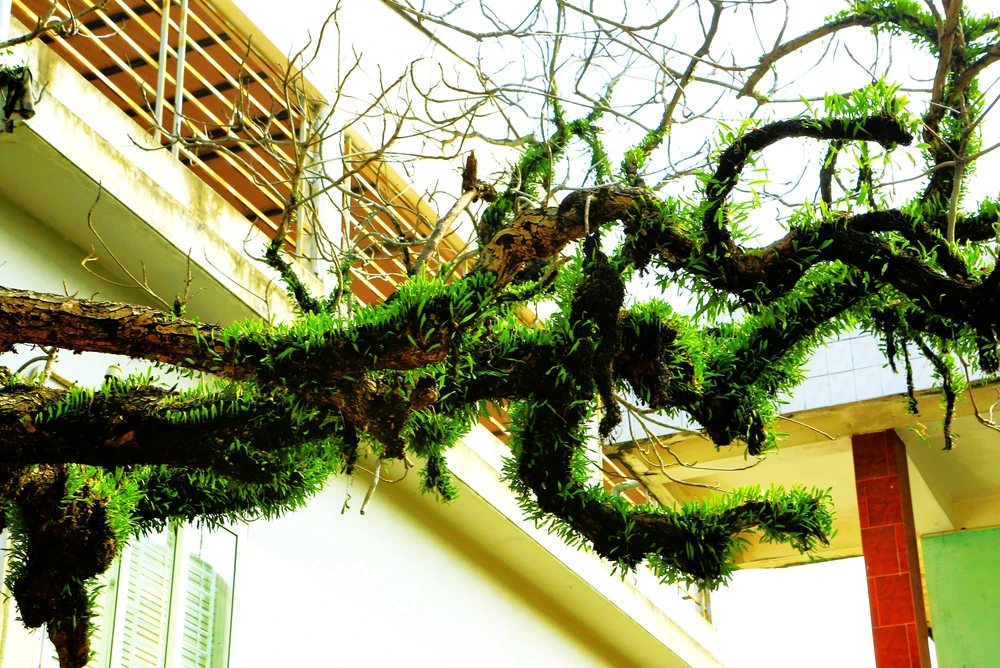 Ở mỗi cành cây của cây bàng cổ thụ là nét rêu phong, cổ kính trầm mặc mang màu thời gian. Ảnh: ĐẶNG TRUNG |