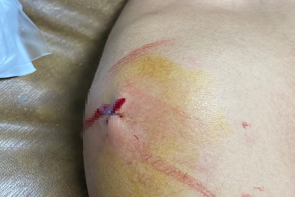 Nạn nhân K bị đâm trúng vai và đùi. Ảnh: CA