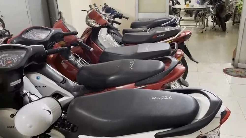 Xe máy tang vật đang bị tạm giữ. Ảnh: CA