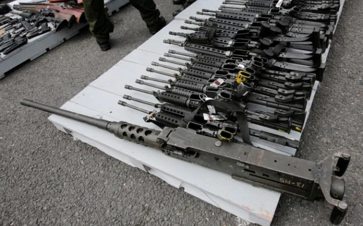 Cảnh sát thu giữ vũ khí của các băng nhóm tội phạm ở Mexico. Ảnh: REUTERS